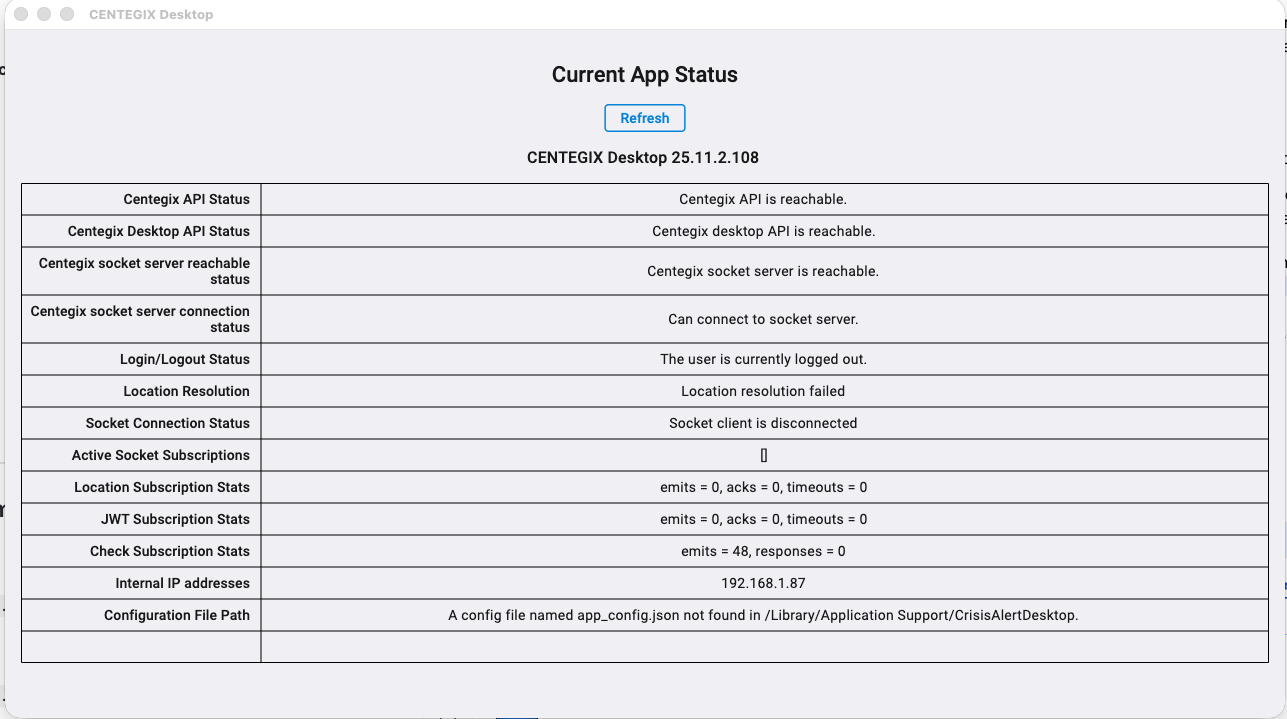 Click the Centegix icon in the menu bar and select “Current Status.”